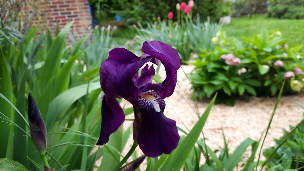 Le flou est-il la condition de notre regard ? S’interrogeait Jeanne qui avait pris ce matin une photo de son unique iris en fleurs alors qu’en arrière plan l’hellebore et les tulipes sont dans le flou le plus total. Toujours est-il qu’elle aurait bien embrassé Jean ce matin et que cette photo d’iris était un baiser profond qu’elle lui adressait. Elle l’aimait sans condition aujourd’hui et se lamentait de sa condition de fille soumise aux caprices du vent. De quoi la condition est-elle le nom ? S’agit il de circonstances où d’un état de fait ? Beaucoup de questions ce matin auxquelles Jean essaierait de répondre d’ici une heure ou deux, lorsqu’il aura pris son café et qu’il se sera douché. Je t’aime Jeanne pouvait-il déjà dire ce matin dans ces conditions, avec cet iris violet qu’elle lui avait adressé. Merci Jeanne ma mie s’est il ainsi exprimé en lui envoyant une photo de son pré en retour.