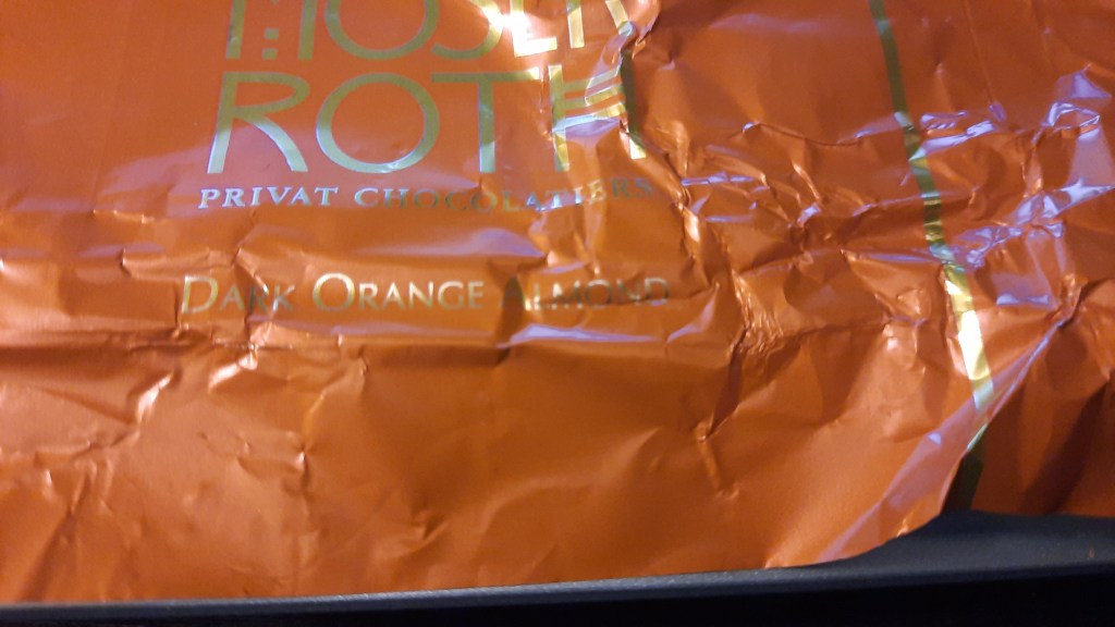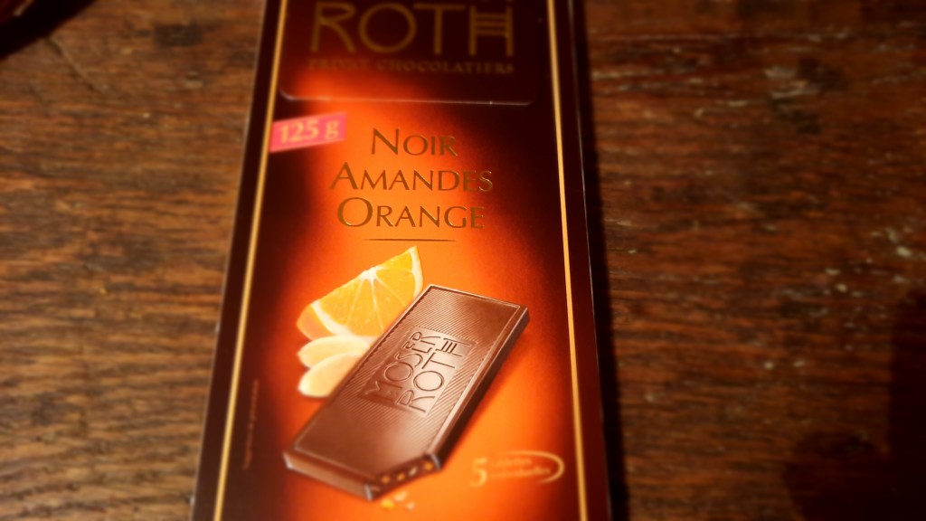 Il est noir aux oranges et aux amandes.